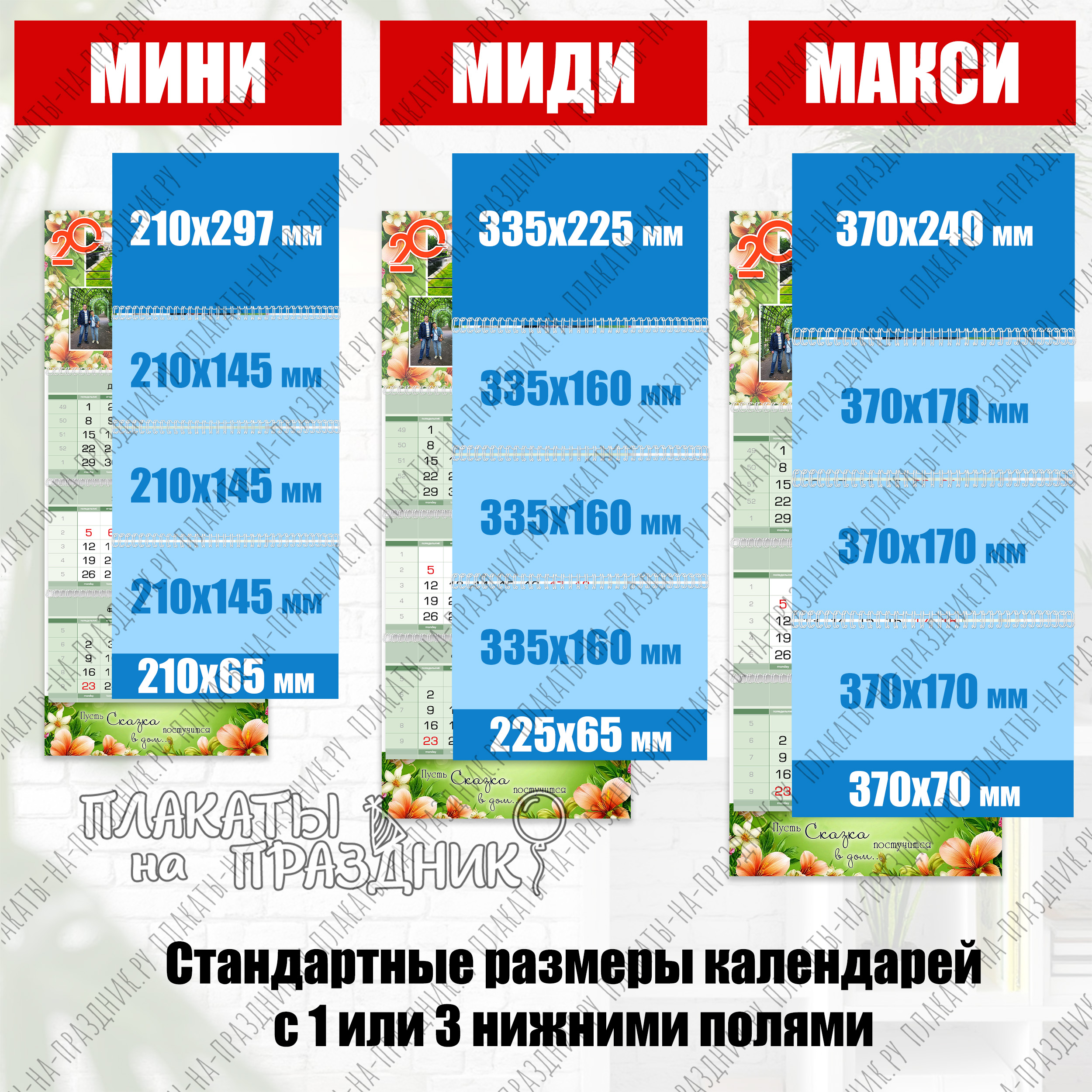- варианты конструкции: одноблочный, двухблочный или трёхблочный календарь на ваш выбор.